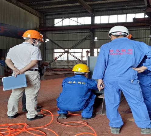 (圖一為省鋼協(xié)專(zhuān)家、其他參賽選手在觀摩鋼泰鋼構(gòu)參賽員工操作)